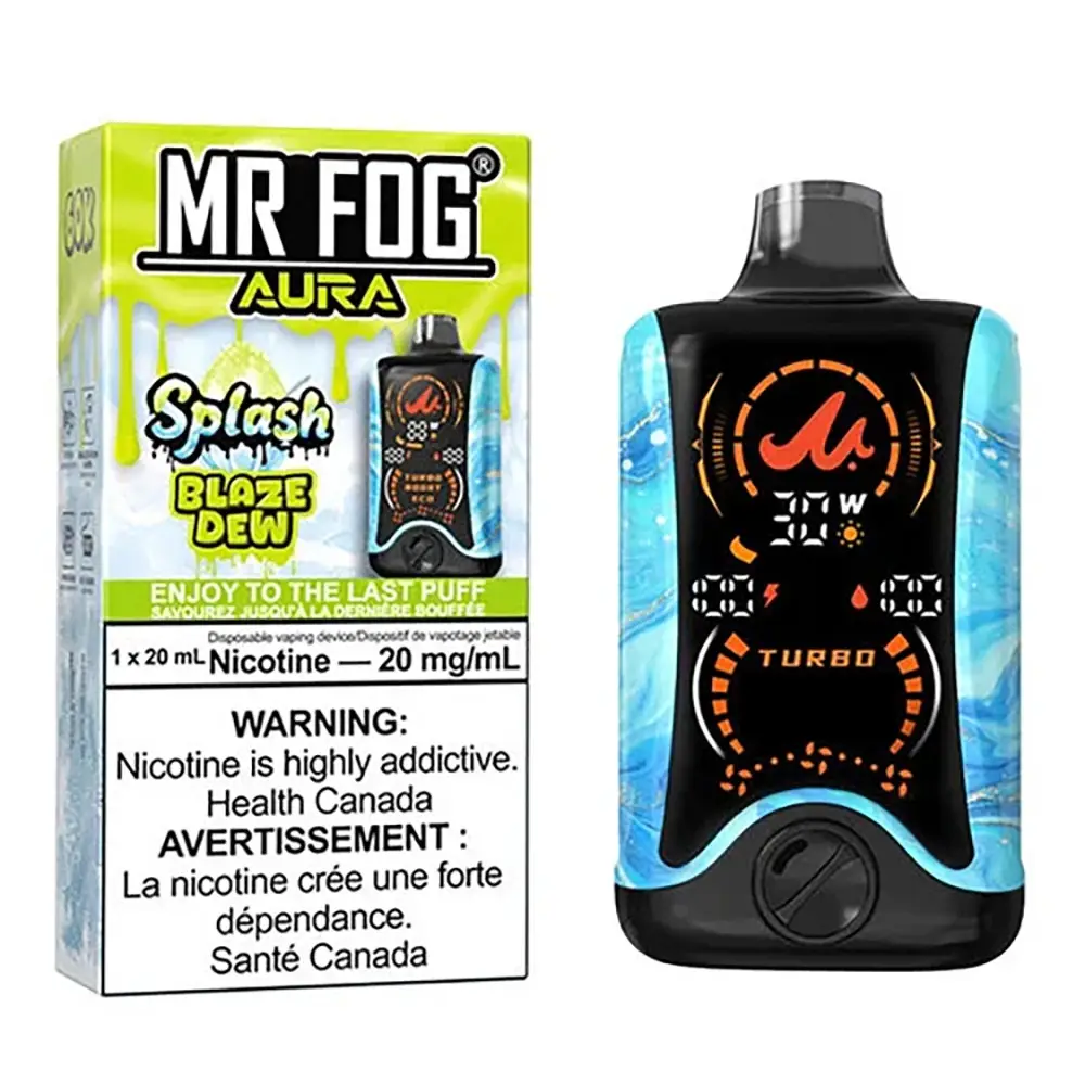 The Blaze Dew Mr Fog Aura Splash stands out because of its reliability. Mr Fog is a brand known for quality, and this device is no exception. The airflow is designed to be smooth, preventing that harsh “burnt” taste that sometimes happens with lower-quality disposables.